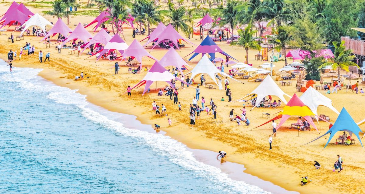 在秀英区,火山脚下的乡村游同样人气爆棚。石山镇的三卿村里,青辰·乡嘢咖啡座无虚席,下午时段的乐队弹唱为静谧的田园增添了时尚气息;春风十里非遗小院内,市民游客体验拓印年画、剪福字,感受传统年俗的魅力。在荣山寮村,曾经的小渔村焕发出独特的潮酷魅力,成为滨海游的热门目的地,大量市民游客在沙滩上享受惬意时光。