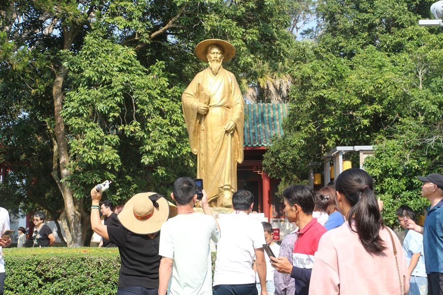 游客在东坡雕像前打卡拍照。海南日报全媒体记者刘晓惠 摄