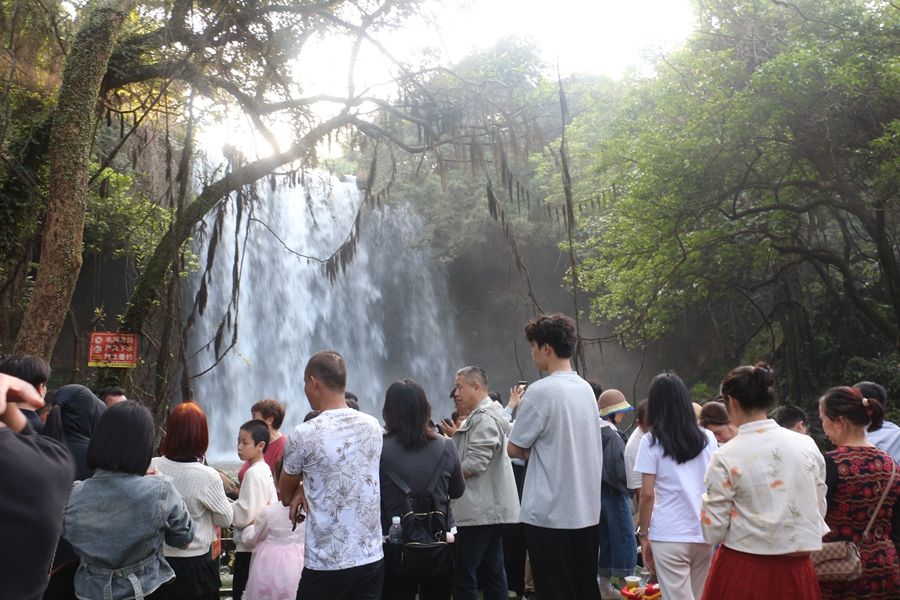 2月20日,临高古银瀑布游人如织。海南日报全媒体记者刘晓惠 摄