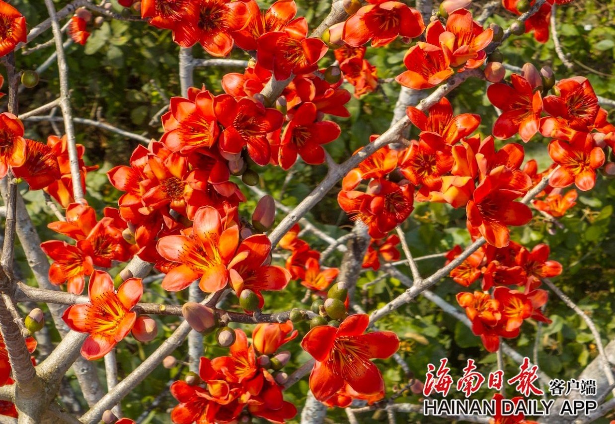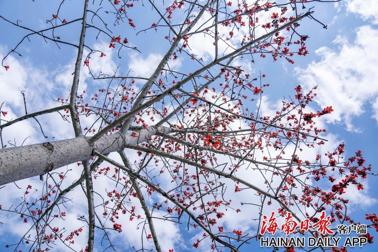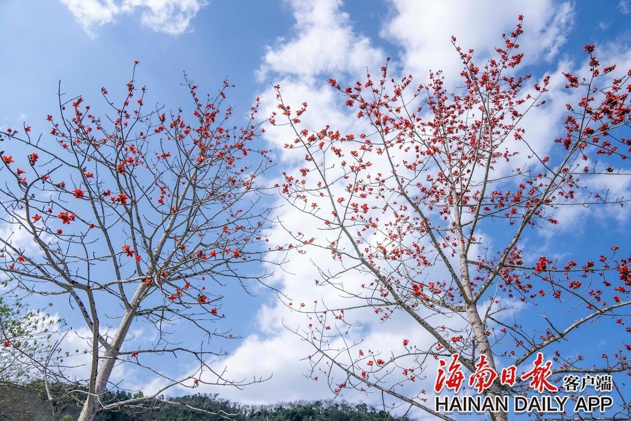 2月21日,在鹦哥岭脚下的白沙黎族自治县,一树树木棉花迎着春风竞相绽放。火红的花瓣缀满枝头,鲜艳夺目、生机盎然,将春日的白沙装扮得暖意融融,成为山野间最动人的风景线。