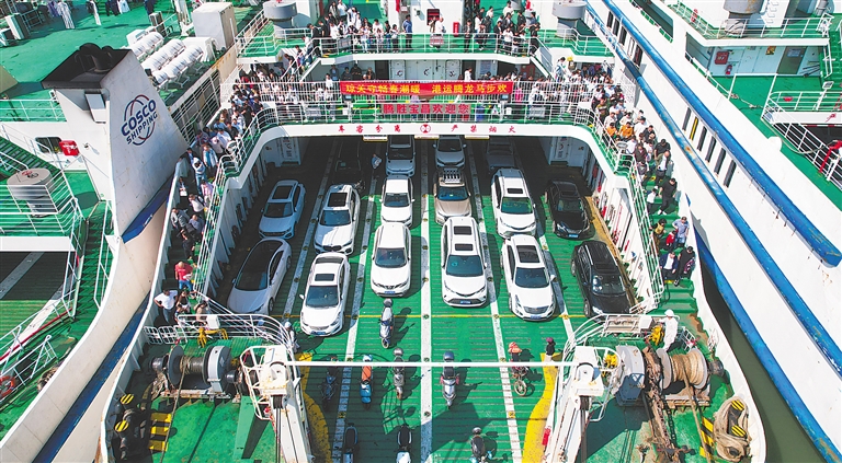 随着春节假期过半,琼州海峡返程流量迎来高峰。据海口市相关部门研判,预计出岛高峰为2月20日至23日(正月初四至初七)。为应对返程高峰,海口市采取强化运输保障、加密气象研判与联动调度、做好信息引导等举措,守护旅客车辆平安便捷返程。新华社记者 杨冠宇 摄