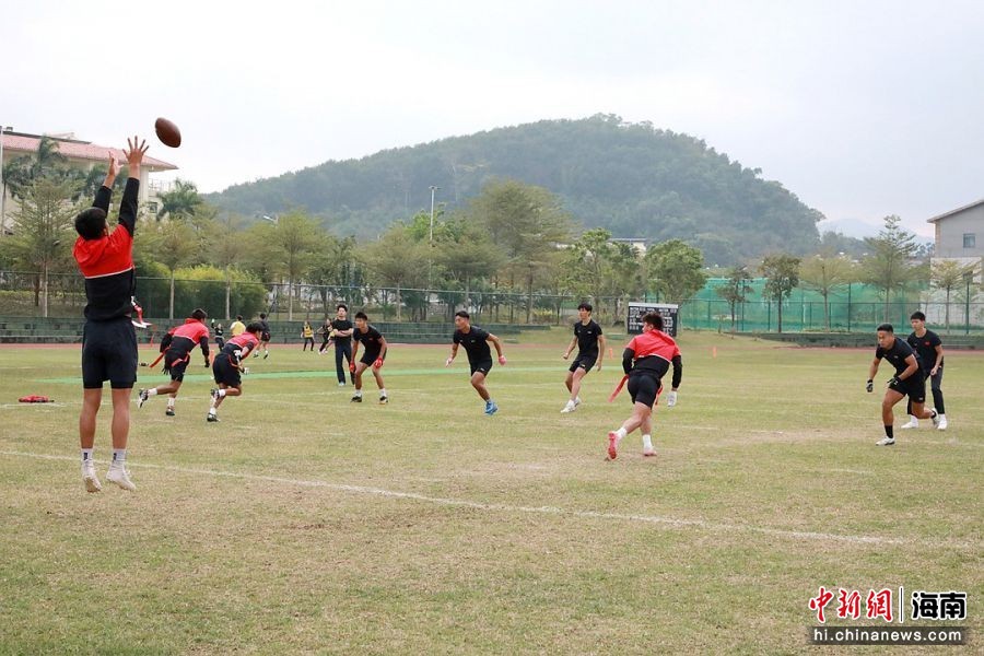 图为国家腰旗橄榄球队的队员在国家体育训练南方基地(海南白沙·综合)内进行冬训。白沙融媒体中心供图