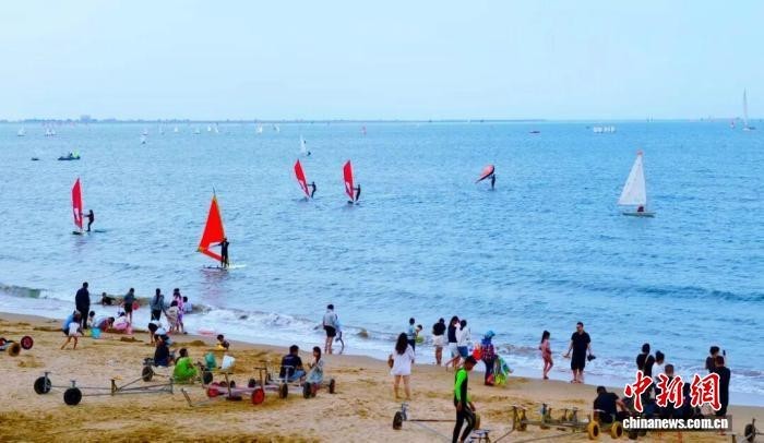 游客在海口体验帆板、桨板等运动。 (海口市旅游和文化广电体育局 供图)