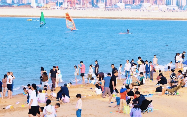 今年春节,假日海滩旅游区同样欢声笑语不断。温暖的阳光下,市民游客或赤脚踩沙漫步,或追逐浪花嬉戏,尽情享受亲水乐趣。