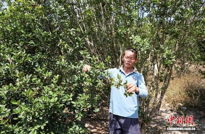 图为海南省白沙黎族自治县油茶种植户查看油茶树情况。 白沙融媒体中心 供图