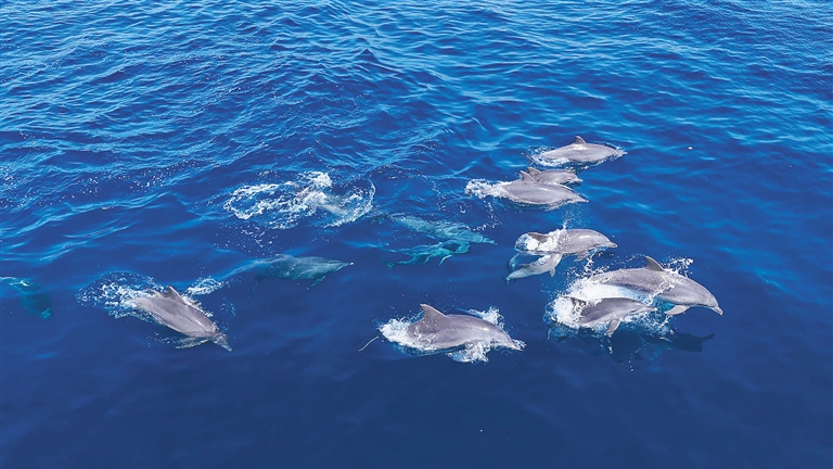 2月24日,三亚蜈支洲岛附近海域出现海豚群。 三亚蜈支洲岛旅游区供图