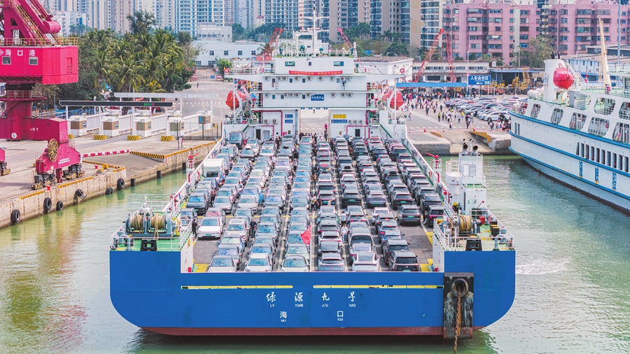 2月24日上午,海口新海港内车辆有序排队登船,电子屏上实时跳动着航班信息,身着红色马甲的志愿者穿梭其间,为旅客提供指引服务。记者从海南省交通运输厅了解到,2月15日至23日春节期间,琼州海峡客滚运输累计发送航班2564班次,运送旅客127.3万人次、车辆29万台次。其中,2月23日单日车辆运输量达4.02万台次,创下历史新高。