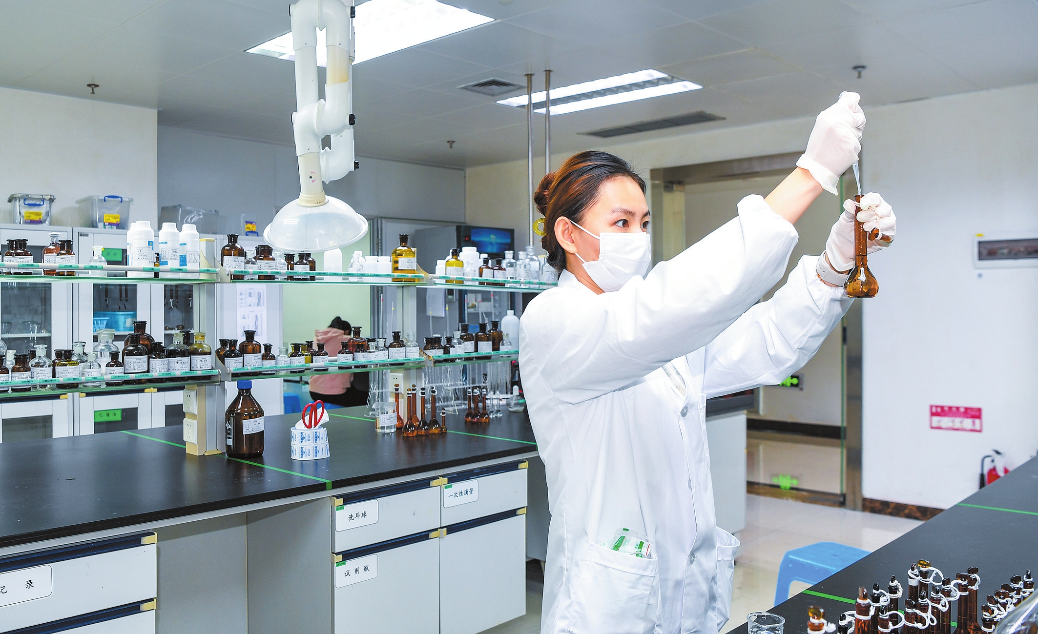 海南亚洲制药股份有限公司的实验人员正在进行移液定容实验。(本报记者 康登淋 摄)