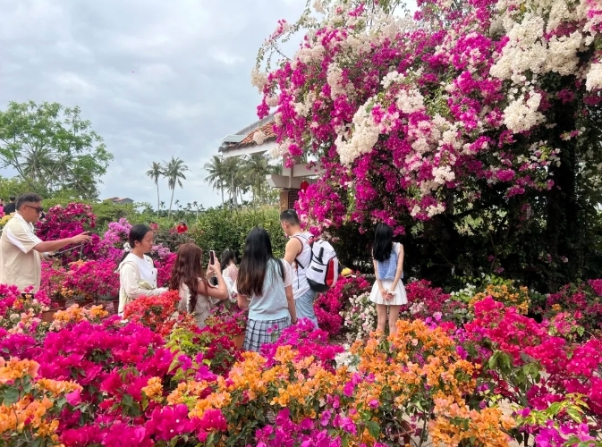 “我们是看到朋友发来的照片专程过来的,真的太美了,简直是花的海洋,让人心旷神怡,拍照拍得都不想走了。”游客刘碧荣难掩兴奋,“各种颜色的三角梅都有,千姿百态,美不胜收。”