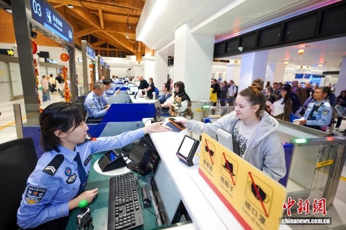 2月23日,凤凰出入境边防检查站执勤民警为通关旅客快速办理边检手续。 蒙绪顺 摄