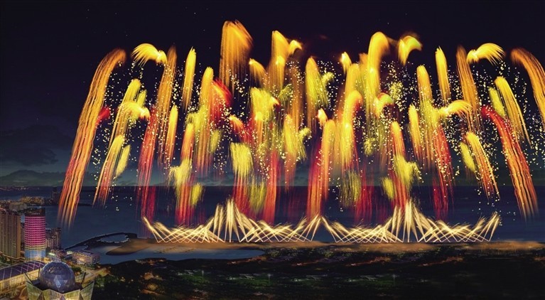 “千缕金沙”烟花。(效果图)