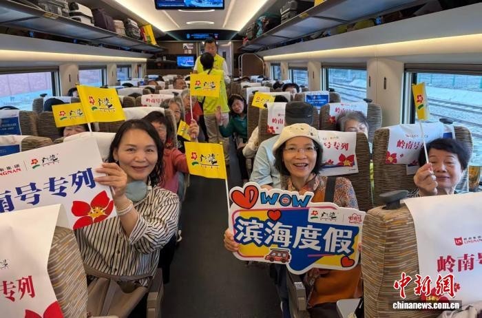 中新网广州3月2日电 (程景伟 詹小澜)春节过后,元宵节民俗活动登场,成为撬动旅游市场的又一重要支点,带动节后新一轮出游热潮。约200名游客2日在广州搭乘广湛高铁“岭南号”主题专列前往湛江遂溪、吴川、海南等地,沉浸式体验正月民俗节庆氛围。