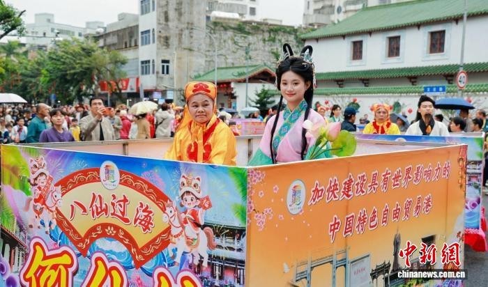 “这简直是一场穿越时空的奇遇!”3日下午,来自喀麦隆的游客弗朗克(Franck)挤在热闹的人群中,不停拍摄眼前的“装马匹”民俗巡游。雄狮舞动,鼓乐铿锵,身着古装的“历史名人”与“七仙女”乘坐花车徐徐行过街巷,仿佛将千年琼州的历史画卷徐徐铺展。