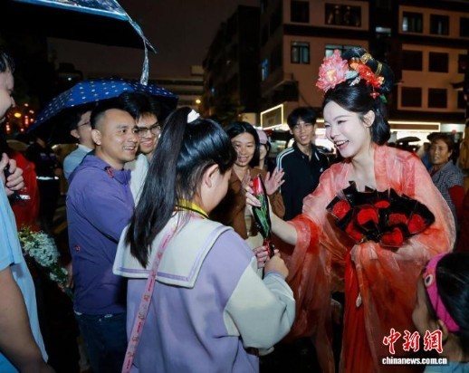 暮色初临,这份独属于府城的浪漫,从书院的书香墨韵,流淌进了市井烟火的花香之中。绣衣坊、马鞍街、宗伯里、琼台地等十余条古巷已是花灯如昼。游人手持玫瑰、桔梗穿梭其间,遇见投缘者便含笑相迎:“换花吗?”一枝花的交换,是一次祝福的传递,更可能是一段情缘的开始。