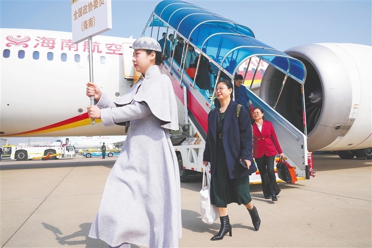 本报北京3月3日电(海南日报全媒体特派记者袁宇 黎鹏)3月3日,肩负全省人民的期盼和重托,出席十四届全国人大四次会议的海南代表团代表搭乘班机抵达北京。