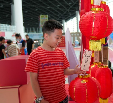 在海口新海港,旅客猜灯谜领奖品。海南日报全媒体记者 李天平 摄