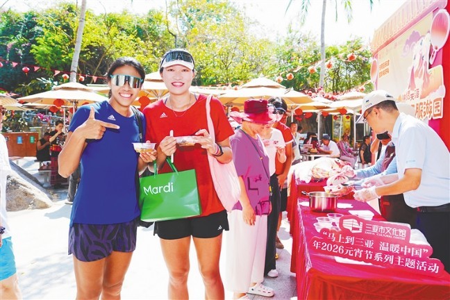 三亚天涯海角游览区免费送出汤圆,为八方游客送上暖心祝福。