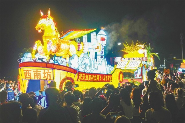 乐东黎族自治县黄流镇举行元宵花灯巡游活动,喜迎八方宾客。