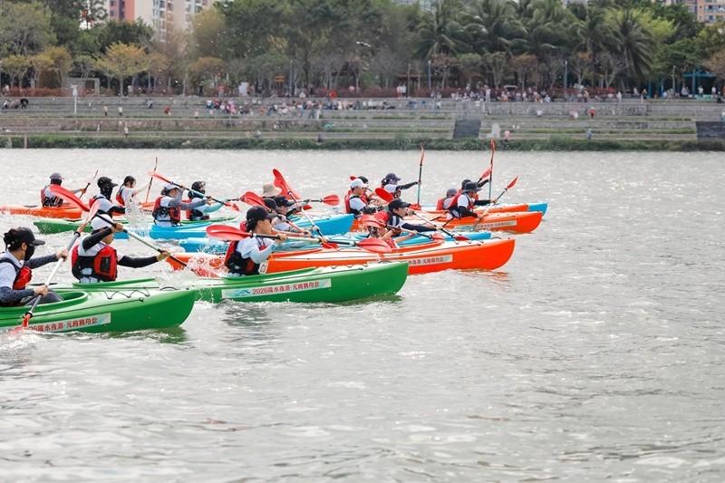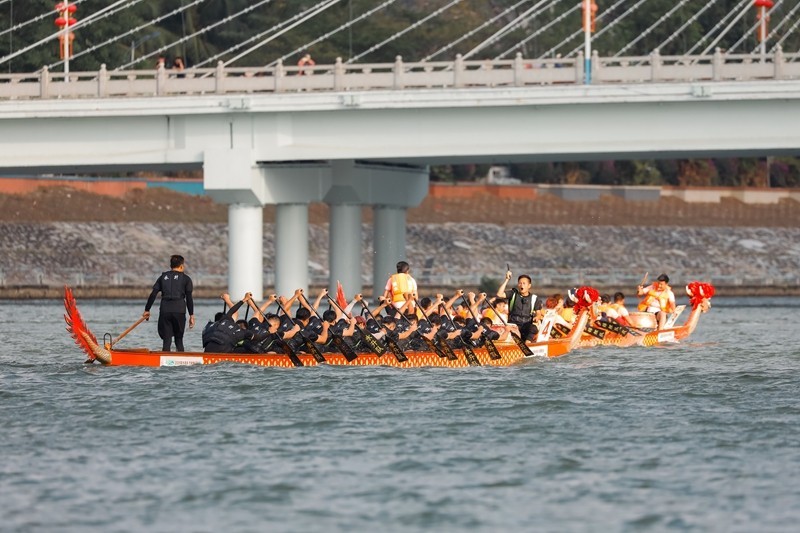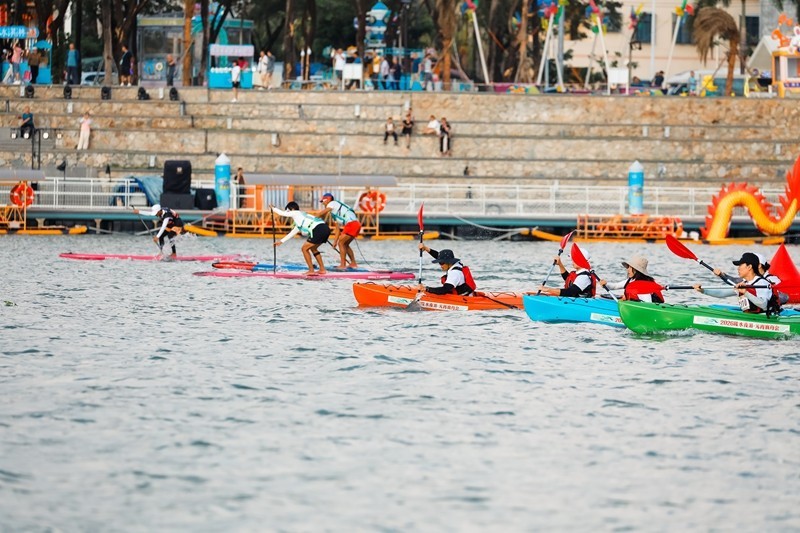 下午15时起,巅峰对决轮番上演。皮艇、桨板、赛艇项目依次开赛,选手们挥桨竞渡、奋勇争先,水面上的速度与技巧比拼让现场欢呼声不断;16时30分,备受瞩目的龙舟项目开赛,各队伍鼓声雷动、齐心协力劈波斩浪,将赛事氛围推向高潮。