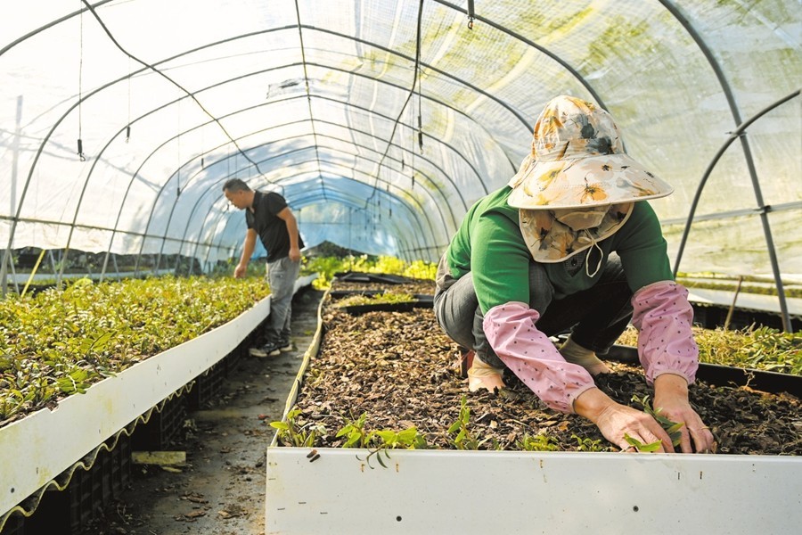 近日,在位于秀英区石山镇福安村的黎药园产业园内,工作人员正在栽种铁皮石斛。本报记者 石中华 摄