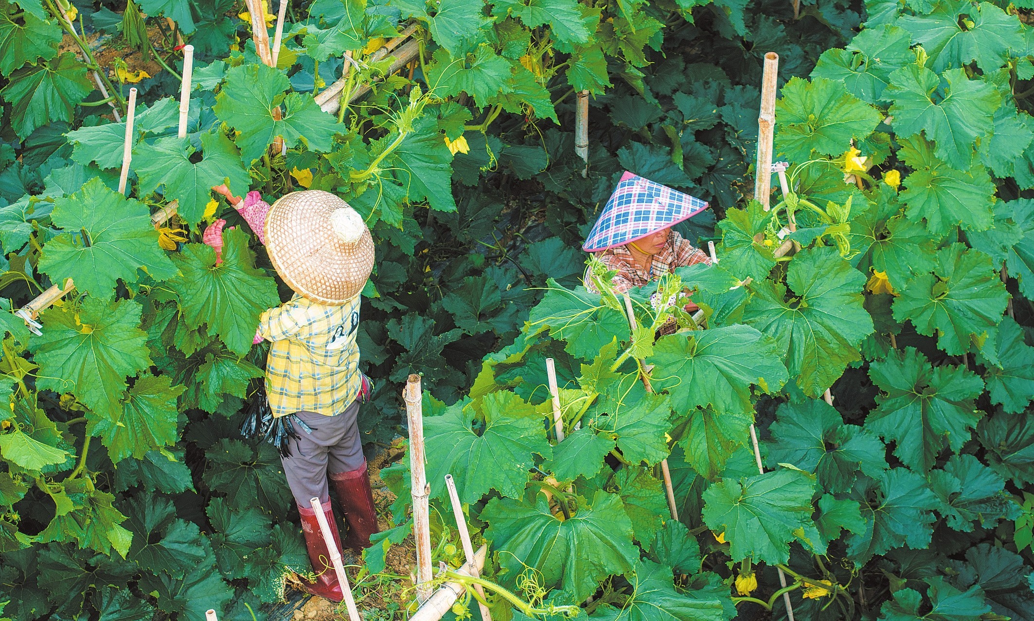 在秀英区东山镇马坡洋蔬菜基地,农户正在整理冬瓜藤蔓。本报记者 杨忠凯 摄