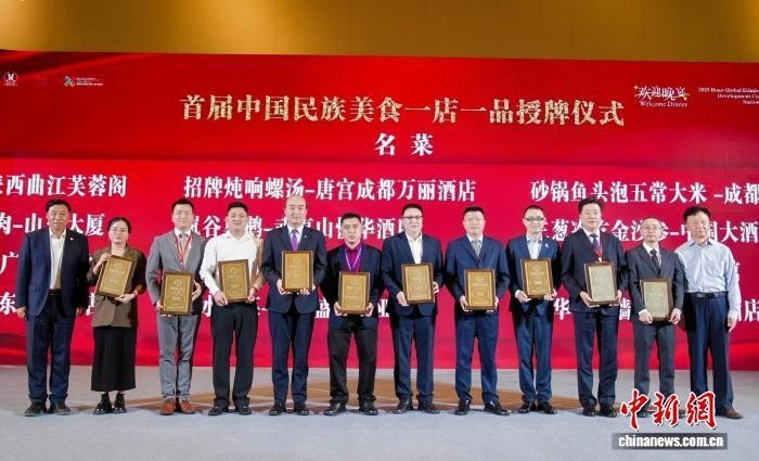 2025年10月25日,在海南博鳌举行的第二届博鳌全球民族文旅产业发展大会暨首届中国民族品牌饭店年会上,首届中国民族美食一店一品授牌仪式举行。 (中国民族贸易促进会文化与旅游工作委员会秘书处 供图)