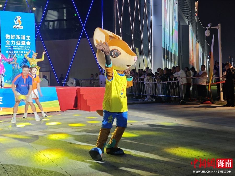 3月13日,第六届亚洲沙滩运动会文化进社区活动在三亚市天涯区三亚湾壹号启幕。图为第六届亚洲沙滩运动会吉祥物“亚亚”亮相现场。张月和 摄