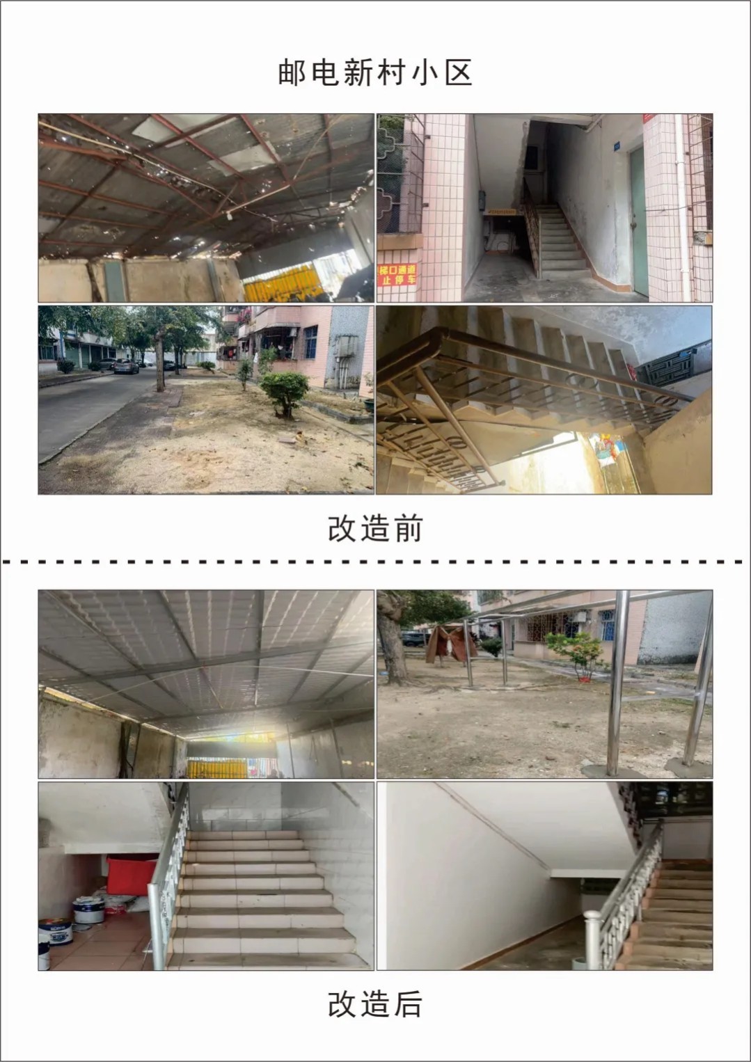 据了解,万城镇部分老旧小区建成年代久远,基础设施普遍老化,现有条件已难以满足居民日益增长的生活需求,不同程度存在环境杂乱、安全隐患等问题。如何破解这一难题?万宁市创文办坚持宜疏不宜堵、多创造少禁止的工作思路,积极谋划对策、主动担当作为,急群众之所急、想群众之所想。为切实改善老旧小区脏乱差的居住环境,让居民生活更加便利舒心,万宁市创文办在马年春节前,对辖区12个老旧小区实施微改造,用心用情办好民生实事:刷新楼梯扶手、粉刷楼梯墙面、建设共享电动车充电棚、增设刷码充电桩、硬化公共区域地面、建设公共晾晒区……