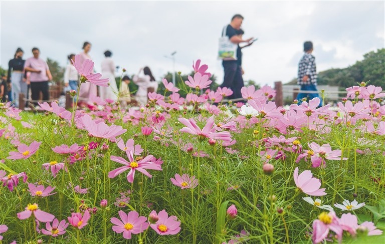 海口万绿园花海吸引市民游客前来打卡。海报集团全媒体中心记者 汪承贤 摄
