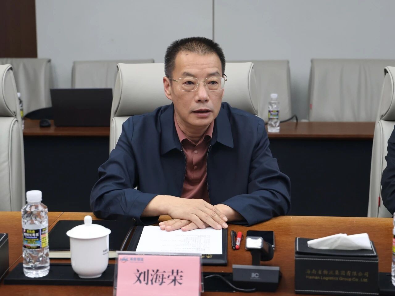 会上,刘海荣详细介绍了集团发展使命、战略定位、重点项目推进及布局情况。他表示,集团于2023年12月正式挂牌运营,作为省属一级国企,始终以“畅通道、降成本、保民生”为使命,定位为海南自贸港物流供应链组织者和专业综合物流服务运营商,聚焦破解自贸港物流堵点卡点问题,通过搭平台、建通道、优服务,全力保障民生供给与产业发展。集团战略聚焦园区(港口)基础设施投资运营、智慧物流大数据平台及基础物流、供应链贸易及金融、综合物流服务四大主业,围绕“岛内筑基、岛外辐射、国际延伸”的战略布局,重点推进新海陆岛物流园、徐闻国际物流园、海口汽车产业园、海南自贸港跨境贸易综合产业园、海南自贸港智慧物流大数据平台等重点项目,同步打造循环经济与再生资源利用、商品汽车国际供应链服务、绿色低碳新能源物流服务等新兴业务。