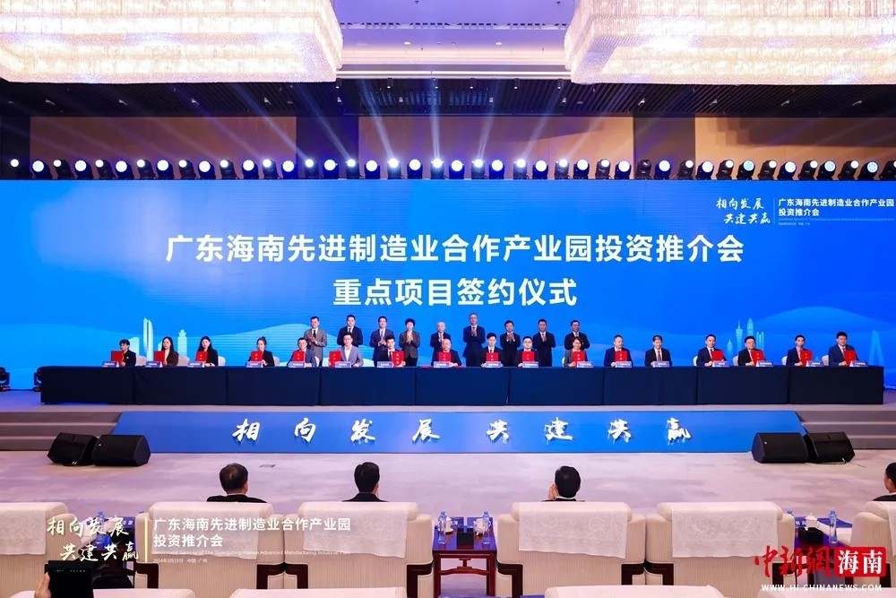 在广东海南先进制造业合作产业园投资推介会上,海口市秀英区参与重点项目招商签约。陈创淼 供图(资料图)