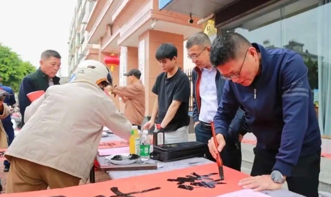 据介绍,在2026年“万福迎春”公益活动中,万宁市书法家协会以笔为媒、以纸传情,足迹遍布城乡。活动自1月31日持续至2月13日,历时15天,累计开展公益活动36场,组织书法家深入后安镇、和乐镇、龙滚镇等10个乡镇,覆盖30余个村落、社区及机关单位,将“送福”送到基层最末梢。活动共为群众书写春联与“福”字20000余副,乡村留守老人、社区居民、机关干部等都能在家门口领取到饱含祝福的春联,现场洋溢着喜庆祥和的年味。与此同时,协会注重文化浸润,厚植乡土根基,通过现场书写、群众互动等形式,让书法艺术融入生活,使传统年味与墨香交融,让群众在感受新春祝福的同时,领略中华优秀传统文化的魅力,实现了“送文化”与“种文化”并重。