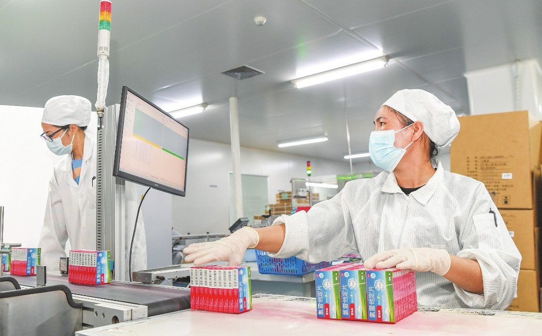 海口国家高新区内的万特制药(海南)有限公司智能生产车间里,工作人员全神贯注投入生产。本报记者 康登淋 摄