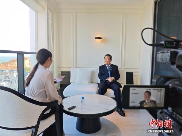 博鳌亚洲论坛2026年年会期间,泰国正大集团资深董事长谢国民接受中国侨网记者采访。中新网记者 林士杰 摄