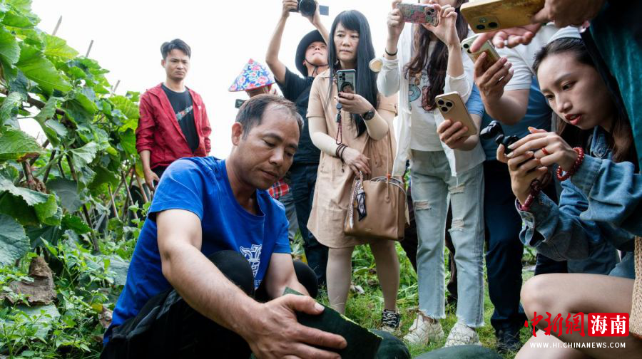瓜农向客商们推介儋州黑皮冬瓜。(海南省农业农村厅 供图)