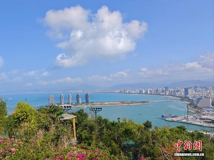 3月30日,海南三亚,从三亚鹿回头风景区俯瞰美丽海湾三亚湾。张月和 摄