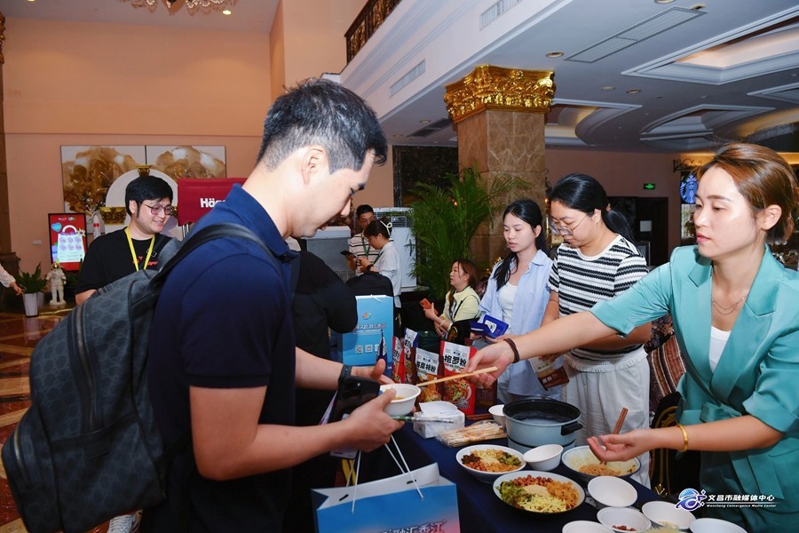 现场的特产体验试吃区成为一大亮点,糟粕醋、文昌咖啡、锦山牛肉干等经典侨乡美食悉数亮相,让参会嘉宾在舌尖上沉浸式感受海南侨乡的饮食文化底蕴。与此同时,主办方还为每位嘉宾精心准备了专属伴手礼,抱罗粉、海南粉等海南特色美食被悉心装入礼盒,一份份伴手礼,既承载着文昌的待客诚意,更饱含着浓浓的侨乡乡情。
