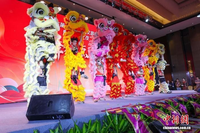 4月3日,2026年第十二届海南文昌南洋文化节举行“香港之夜”文化交流活动,图为现场舞狮表演。中新网记者 骆云飞 摄