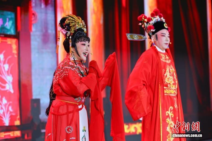 4月3日,2026年第十二届海南文昌南洋文化节举行“香港之夜”文化交流活动,图为现场琼剧表演。中新网记者 骆云飞 摄
