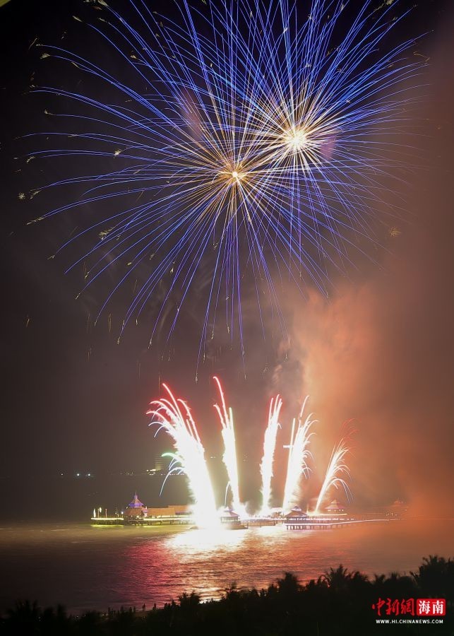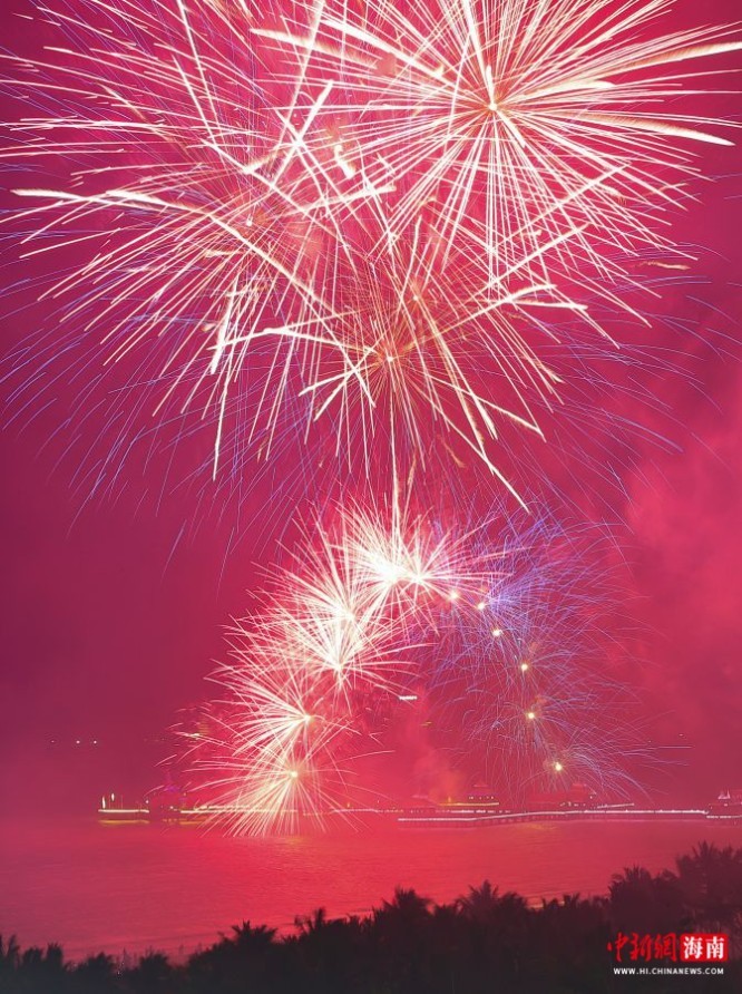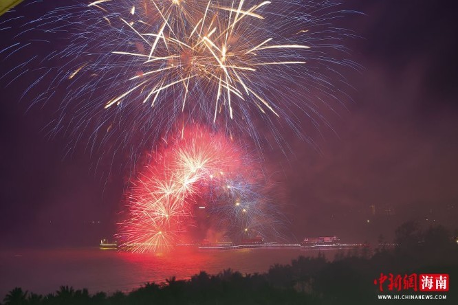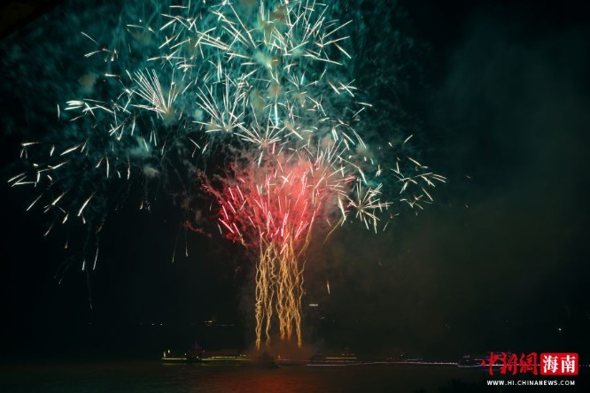 图为第十二届海南文昌南洋文化节烟花表演在文昌市高隆湾举行。骆云飞 摄