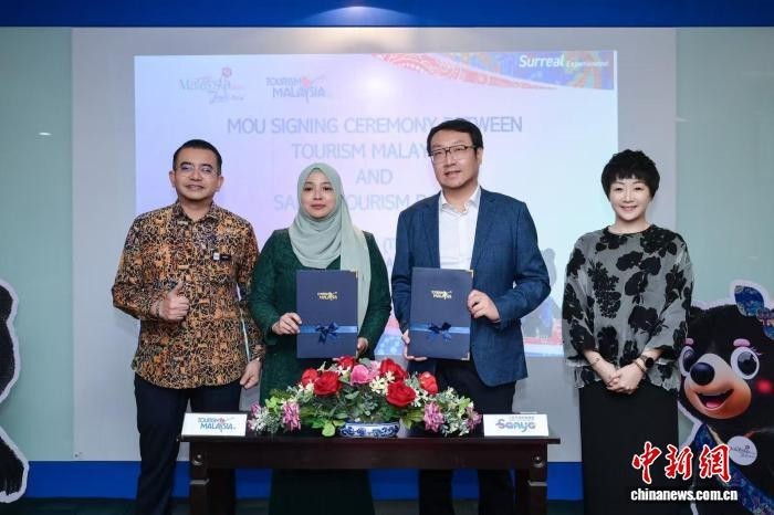 图为4月2日,在马来西亚吉隆坡,三亚市旅游发展局与马来西亚国家旅游局签署合作意向书。(三亚市旅游发展局 供图)