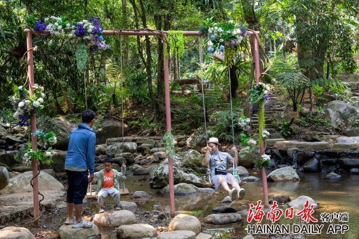 2026年4月6日,游客在琼中百花岭热带雨林文化旅游区游玩。