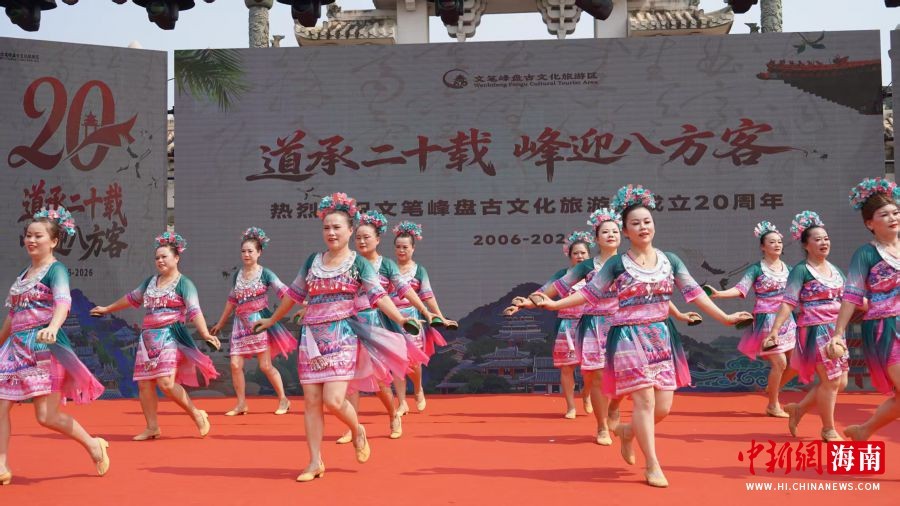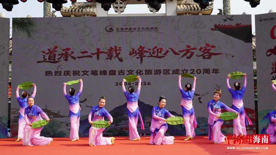 中新网海南定安4月10日电(记者 张茜翼)“道承二十载,峰迎八方客。”4月10日,海南定安文笔峰盘古文化旅游区迎来开园二十周年庆典。园区内鼓乐声声、舞袖翩跹,非遗展演与民俗互动轮番登场,八方游客与各界嘉宾齐聚于此,共赴一场文化与生态交织的文旅盛会。
