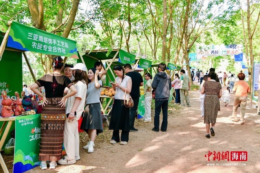 4月11日,三亚市育才生态区举办“锦绣育才·潮涌自贸——‘三月三’共绘封关新画卷”主题活动。图为育才优品市集。(三亚市育才生态区管委会 供图)
