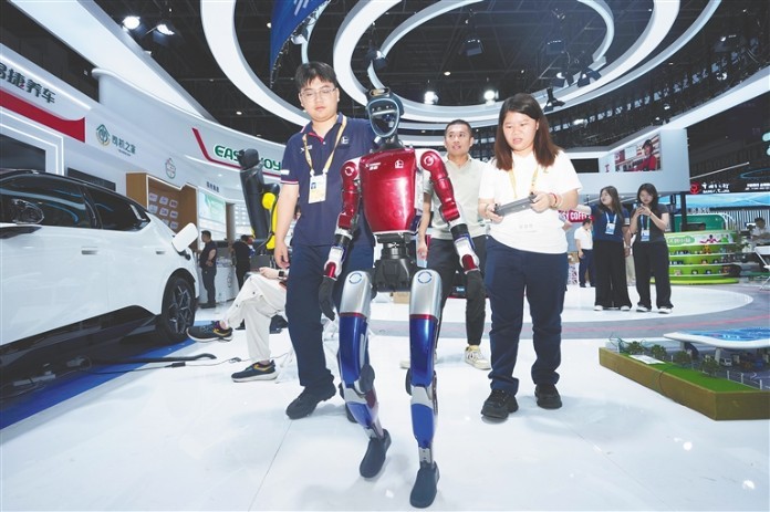 深圳展团携34家企业参展,超九成为科技类企业;广西主题馆带来“智慧南A”机器人、智慧医疗等AI成果,科技类展品占比超60%;安徽、四川等展团也分别带来墨甲智创机器人、影目科技原生一体AI眼镜等智造成果……