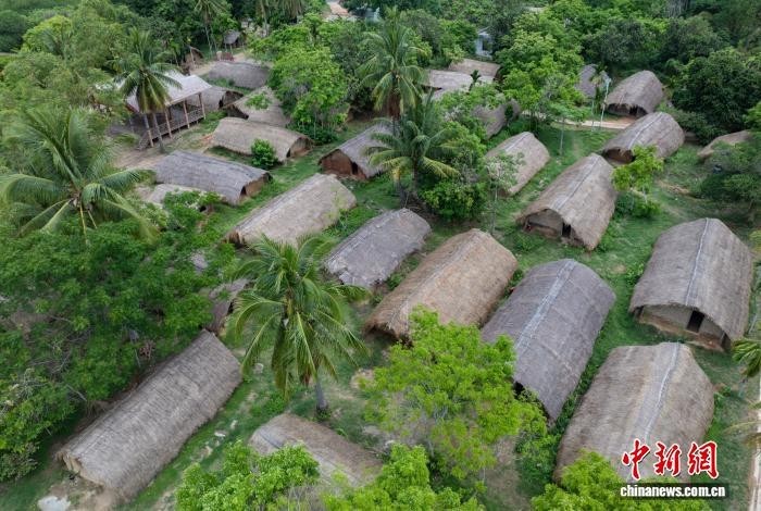 2025年5月12日,俯瞰海南省东方市白查村船型屋,这是中国目前唯一保存完好的黎族船型屋古村落。(无人机照片)中新网记者 骆云飞 摄