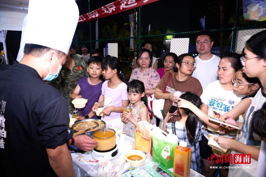 斑兰糕、粗粮、清补凉、博鳌小龙虾、文昌糟粕醋、儋州米烂、椰子水、海鲜烧烤、精酿啤酒、地瓜冰淇淋等特色潮饮,以及各类特色饮料、食品和农副产品——全岛数十个市县的特色美食、小吃、旅游商品、地标好物在此亮相,营造出一片“足球+美食+文旅+消费”的欢庆海洋。