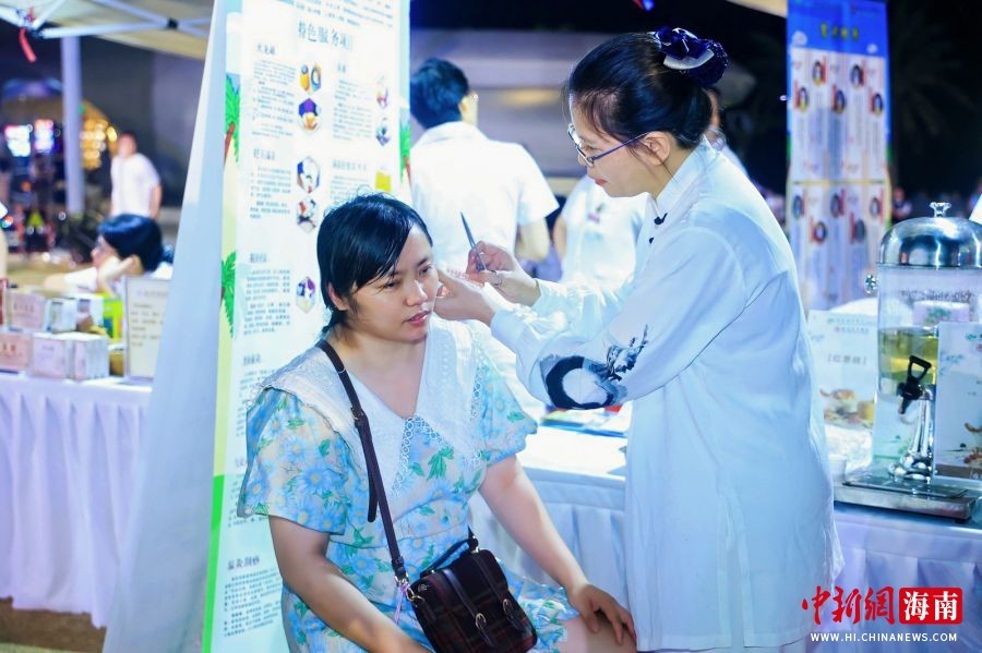 为让民众直观感受中医药文化魅力,活动现场设置八段锦养生功法体验等文化互动环节。同期举办的中医药文化惠民市集成热门打卡点,来自广东省中医院海南医院(海南省中医院)、海口市中医医院、三亚市中医院等多家医疗机构的医生,以及众多药企、文创商家齐聚一堂,提供健康咨询、产品展示、文创产品选购等服务。推拿体验、香囊DIY、中医药拼豆等互动活动,让参与者深入领略中医药文化的博大精深。