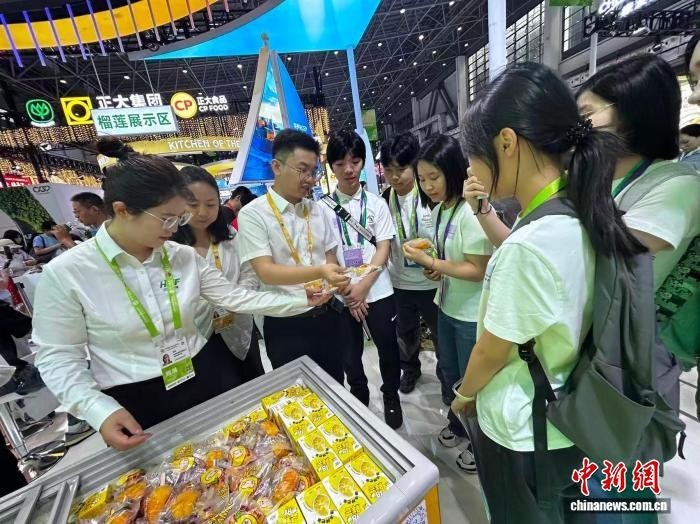 4月15日,香港青少年走进第六届中国国际消费品博览会了解海南热带农业特色食品。中新网记者 符宇群 摄
