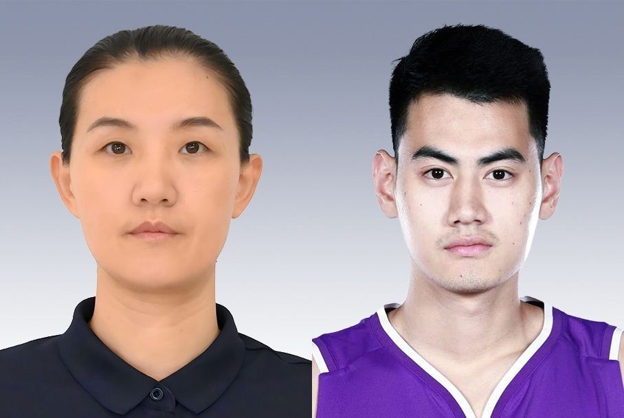 沙滩手球运动员沈萍(左)和三人篮球运动员颜鹏